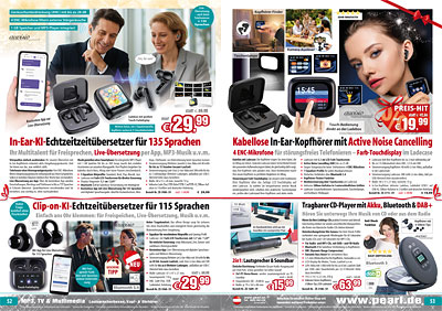 | Produktgruppe: Mobile KI-Echtzeit-Sprachübersetzer mit 4G und ChatGPT-Assistent von € 105,01 bis € 117,99 | Produktgruppe: In-Ear-Mono-Headsets mit Bluetooth und Windgeräusch-Unterdrückung für nur € 33,99 |