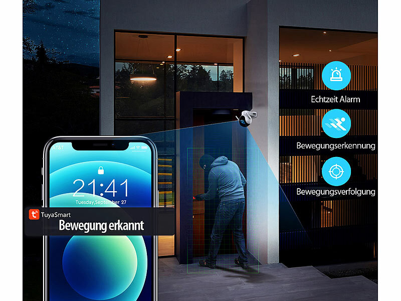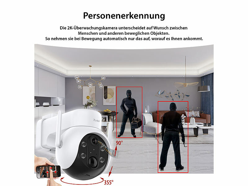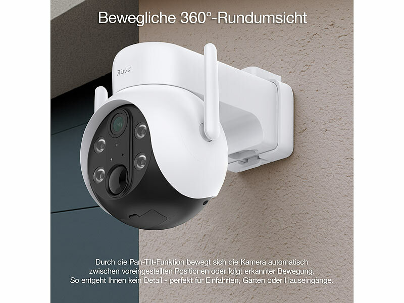 Bewegliche 360°-Rundumsicht: Durch die Pan-Tilt-Funktion bewegt sich die Kamera automatisch zwischen voreingestellten Positionen oder folgt erkannter Bewegung. So entgeht Ihnen kein Detail - perfekt für Einfahrten, Gärten oder Hauseingänge.