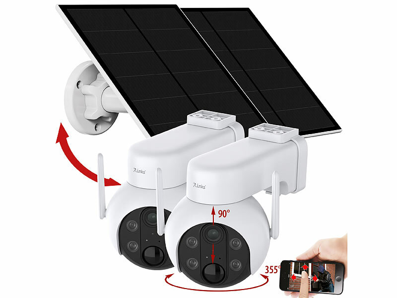 2er-Set 2K-IP-Überwachungskameras IPC-895 jeweils inklusive USB-Ladekabel (USB-C auf USB-A), Wandhalterung, Solarpanel mit Halterung, Montagematerial und deutscher Anleitung