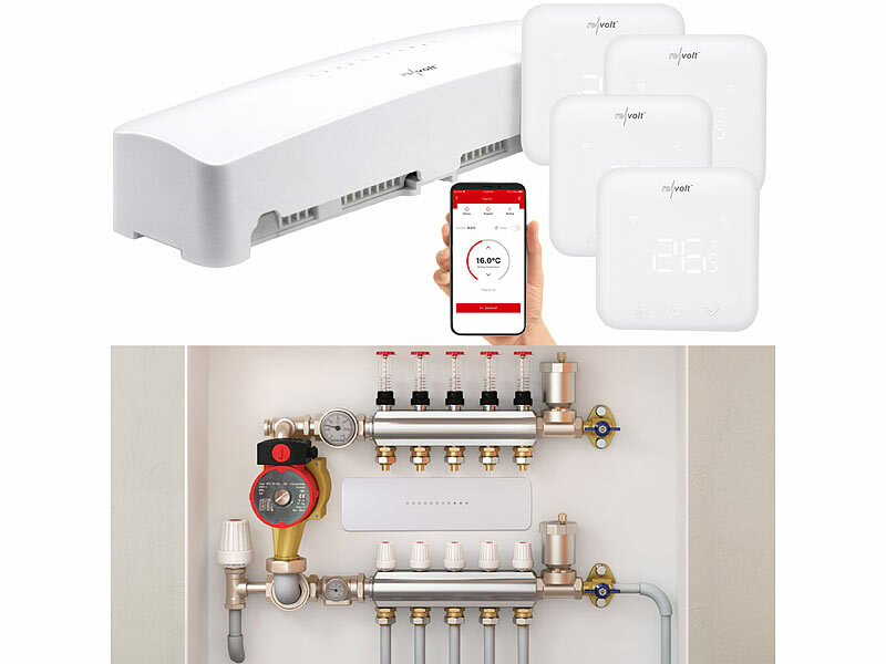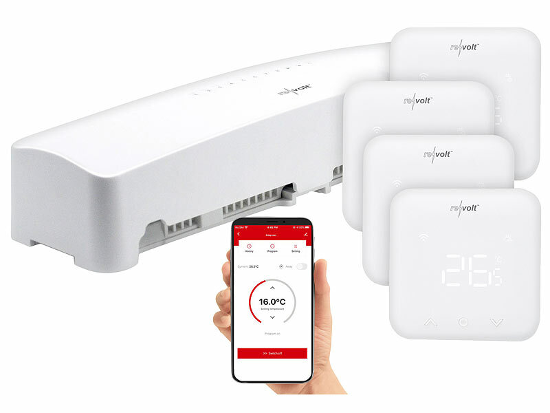 Intelligente Steuerung für Ihre wasserbasierte Fußbodenheizung: Integrieren Sie diese schnell und einfach in Ihr Smart Home. Schon kontrollieren Sie bis zu insgesamt 8 mechamische Stellantriebe und Heizkreisläufe und programmieren die gewünschte Temperatur, legen Heizzeiten fest und mehr.
