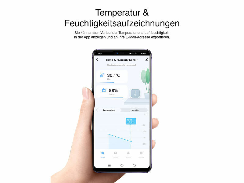 Behalten Sie Temperatur und Luftfeuchtigkeit bequem per App im Blick