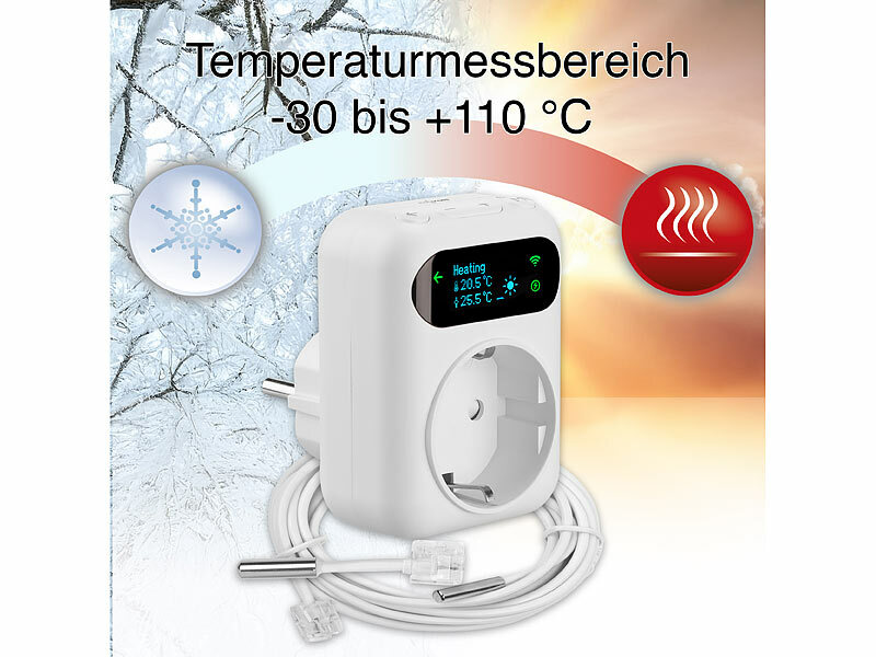 Optimales Raumklima wie von selbst: Dank Ihres neuen WLAN-Steckdosen-Thermostats steuern Sie Ihre Heiz- und Klimageräte abhängig von der Raumtemperatur - und das vollautomatisch. Auf dem farbigen OLED-Display behalten Sie dabei alle wichtigen Informationen bequem im Blick.