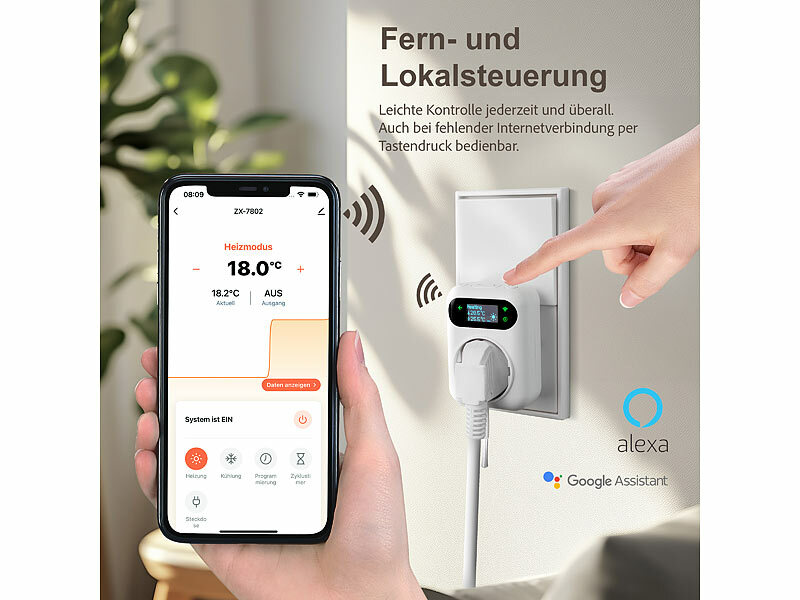 Automatisches, temperaturgesteuertes Schalten von Heizungen und Klimageräten mit Steckdosen-Betrieb