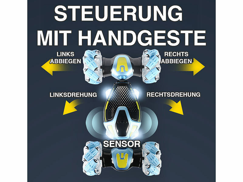 Beeindruckende 2in1-Steuerung mit Handgeste: Dieses Offroad-Auto lässt sich nicht nur klassisch per Fernbedienung steuern, sondern auch über intuitive Handbewegungen. Dank der integrierten...