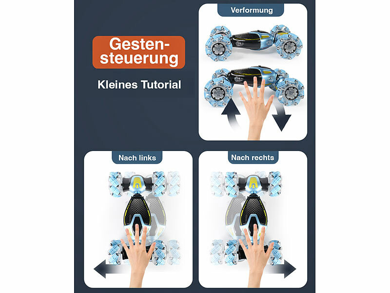 Ferngesteuertes Auto inklusive Akku, Wechselakku, Fernbedienung, Handgelenk-Controller, USB-Ladekabel (USB-C auf USB-A), Schraubendreher und deutscher Anleitung