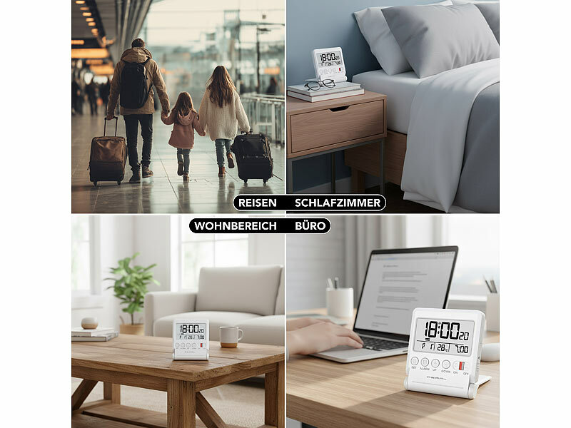 Platzsparend klappbares Design: Der Wecker lässt sich flach zusammenklappen und sicher verstauen, was ihn ideal für Koffer, Handgepäck oder Rucksack macht. Die stabile Bauweise schützt das Display während des Transports vor Kratzern und Stößen. So bleibt Ihr Wecker auch nach vielen Reisen optisch und funktional wie neu.