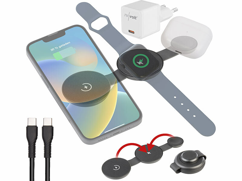3in1-Induktions-Ladestation für drahtloses Aufladen ohne Kabelsalat