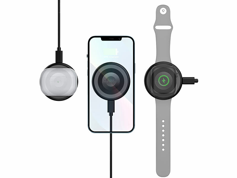 Callstel Kabelloses 3in1-Ladepad, Qi- & MagSafe-kompatibel, 2,5-15 Watt, 30 cm