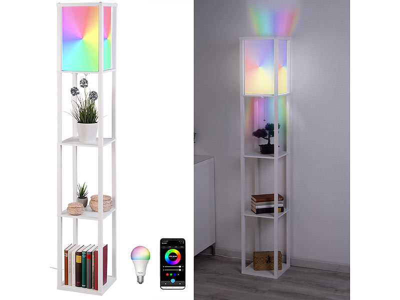 Lampe und Regal in einem: Sparen Sie Platz mit dieser formschönen Kombination aus Stehlampe und Regal. Das integrierte Regal bietet Platz für Bücher, Pflanzen oder Dekorationsartikel, während...