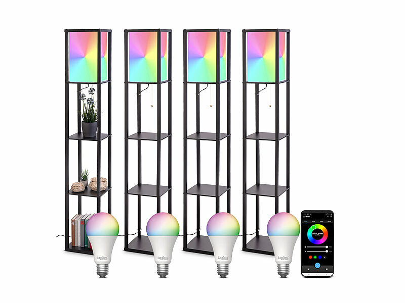 4 Regal-Lampen-Bausätze je inklusive Lampensockel mit E27-Fassung, Lampenschirm, WLAN-LED, Montagezubehör und deutscher Anleitung