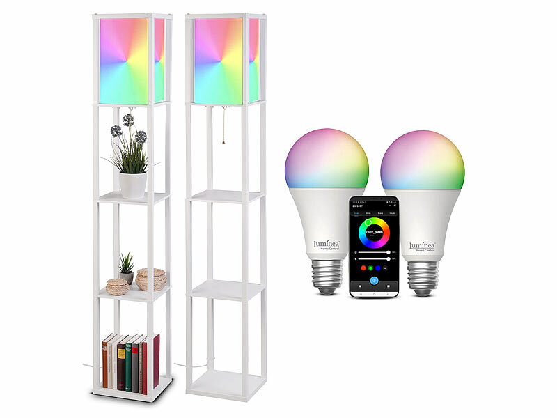 Lunartec LED Stehlampen Wohnzimmer dimmbar, Eckregal