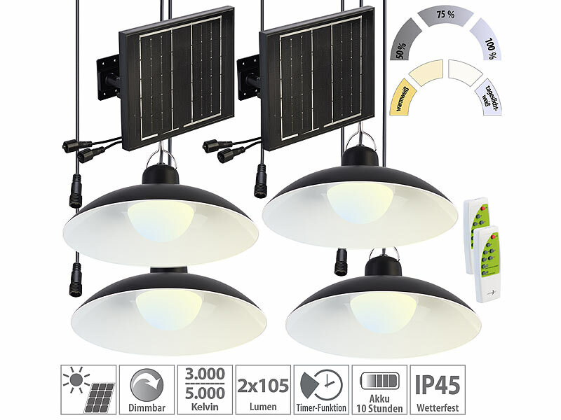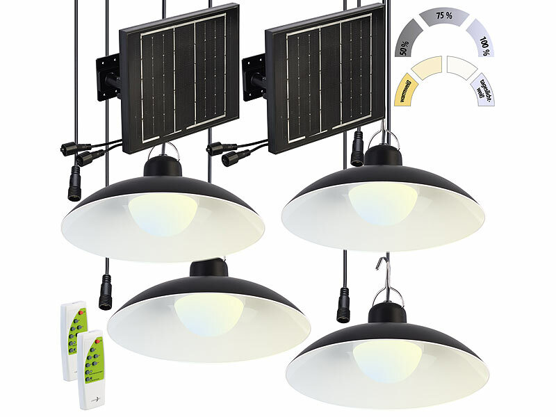 Je 2 Hängeleuchten inklusive Solarpanel, Montage-Material, Fernbedienung und deutscher Anleitung