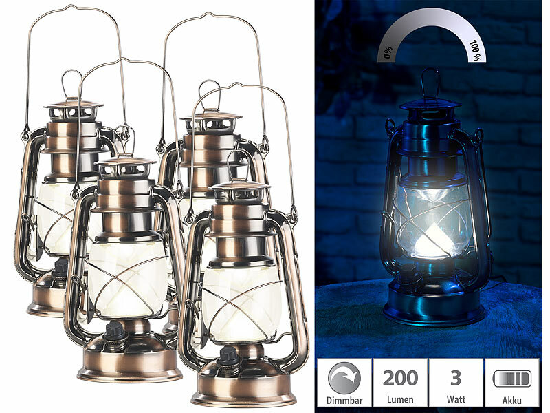 Lunartec dimmbare LED-Sturmlampen mit Akku, helle Lampe wiederaufladbar
