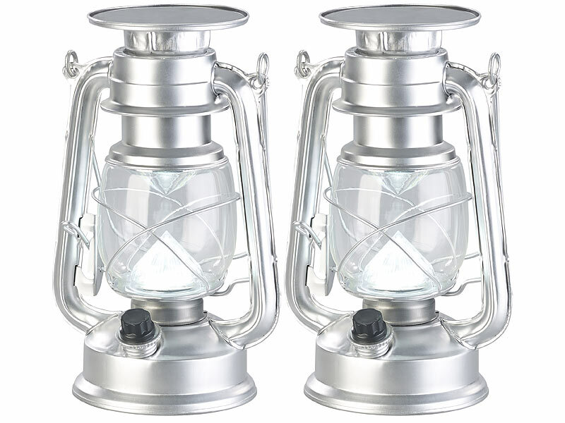 2x LED-Sturmlaterne inklusive Akku, USB-Ladekabel und deutscher Anleitung - Solar-Petroleumlaterne - Außerdem relevant oder passend zu: Öl, Kerze, Angel, Haken, Angeln, Flamme, Öllampe, Picknick, Gartendeko, Taschenlampe, Außenbeleuchtung, Tischlampe, Tischleuchte Batterie