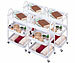 Wagen mit Körben auf 3 Ebenen und leichtgängigen Rollen
