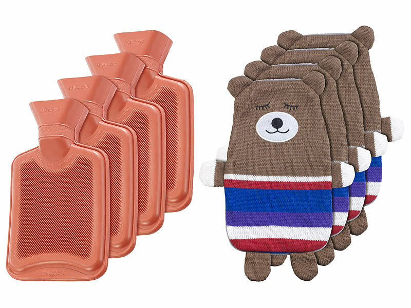 infactory Motiv-Wärmeflasche: 4er-Set Kinder-Wärmflaschen mit Teddybär-Bezug, 1 Liter