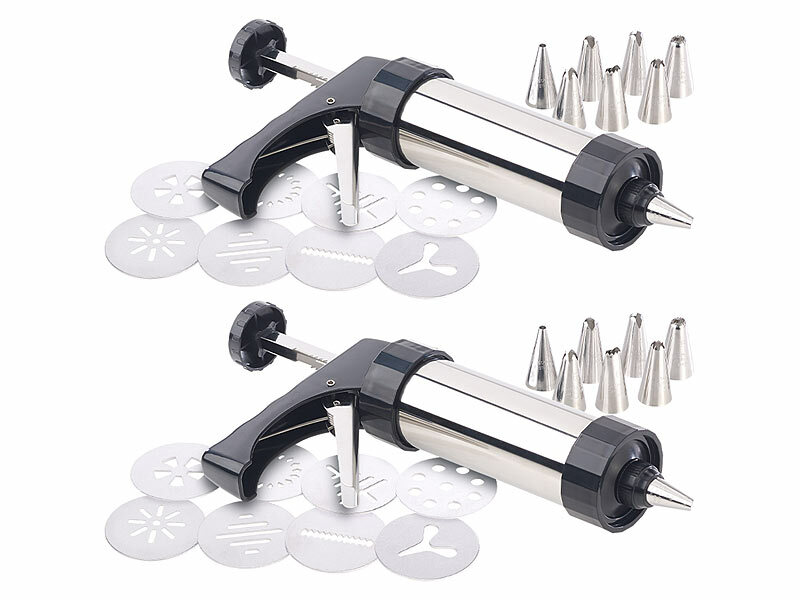 2 Edelstahl-Gebäckpressen & Teigspritzen für Spritzgebäck, Kekse u.v.m.